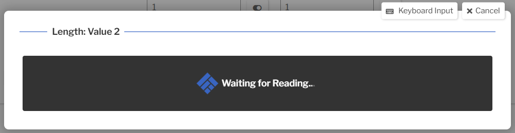 If the Serial Device property has been set on this Test, focusing an input of the Test will open an overlay to collect a reading for that input. If the Device has been configured to Also Allow Keyboard Input, the Keyboard Input button may be clicked to enter the value manually.